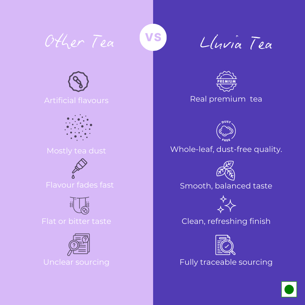 The only close-to-source facility in India. Lluvia Tea's unique procurement process have our teas arrive within just 3 hours after direct sourcing from our garden. On arrival, they are sealed and packed within 48 hours, ready to be shipped to your doorstep the world's freshest Indian Tea.