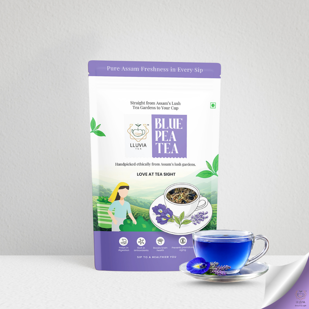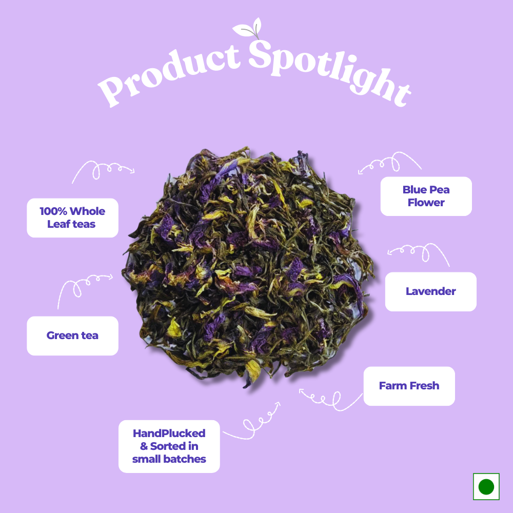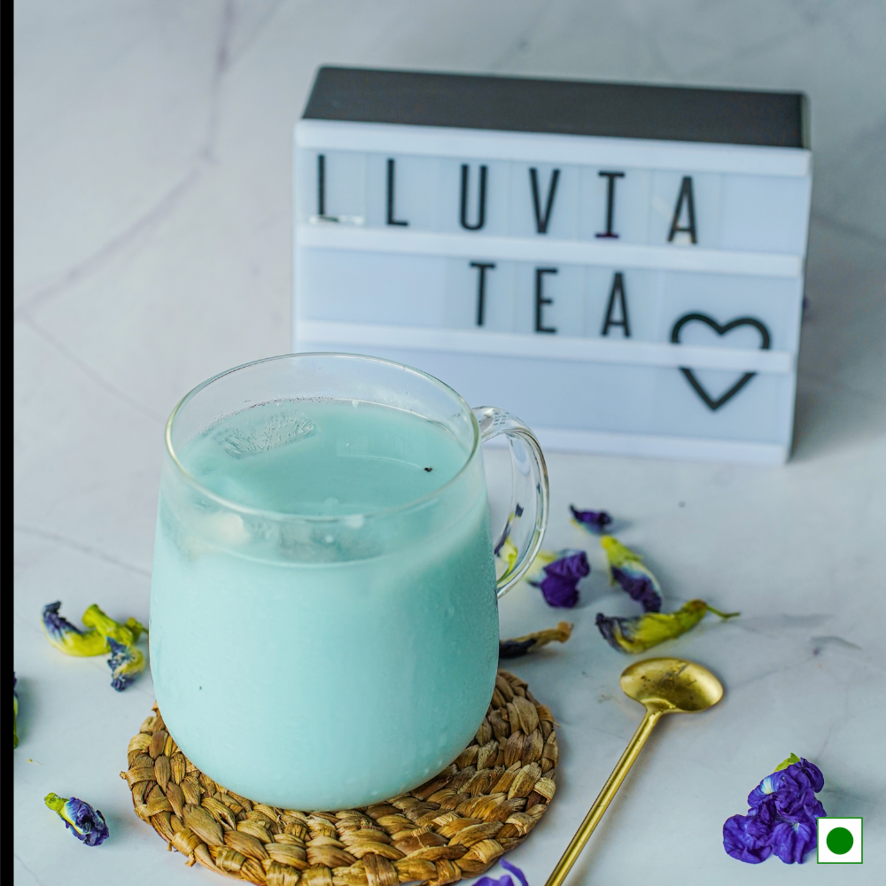 Finest Assam Green Tea with a hint of butterfly pea flower to create a blue brew as rare as a lunar spectacle. Blue Tea is a caffeine-free herbal concoction that is packed with antioxidants—infused with a hint of butterfly pea flower and lavender along with the finest green tea to create a blue brew. Adding lemon juice to the tea changes the pH of the drink, making it change color from deep blue to purple. Blue tea can also be consumed cold as Iced Tea post meals to aid digestion and promote healthy sleep.