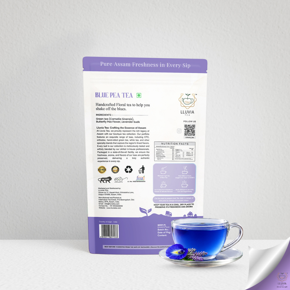 With -Assam Green Tea (Camellia sinensis) -Butterfly Pea Flower or commonly Aparajita Flower (Clitoria ternatea)) -Lavender (Lavandula) as its main ingredients, Lluvia Tea's Blue Tea gives a woody and earthy aroma.