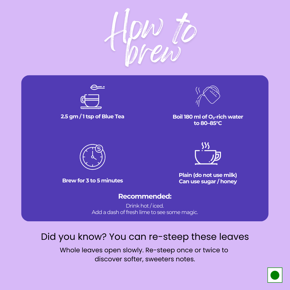 Take 2 gm/2.5 tsp of Blue Tea.