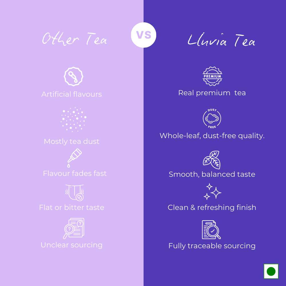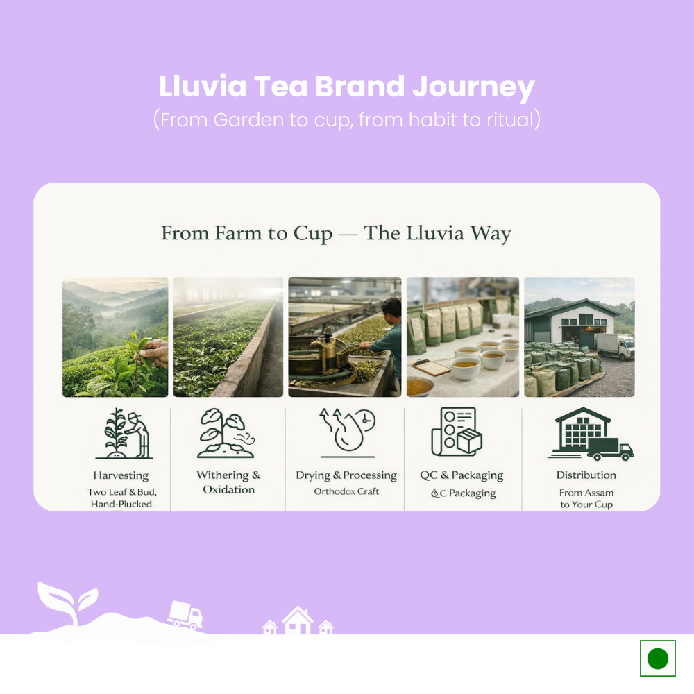 The only close-to-source facility in India. Lluvia Tea's unique procurement process have our teas arrive within just 3 hours after direct sourcing from our garden. On arrival, they are sealed and packed within 48 hours, ready to be shipped to your doorstep the world's freshest Indian Tea.