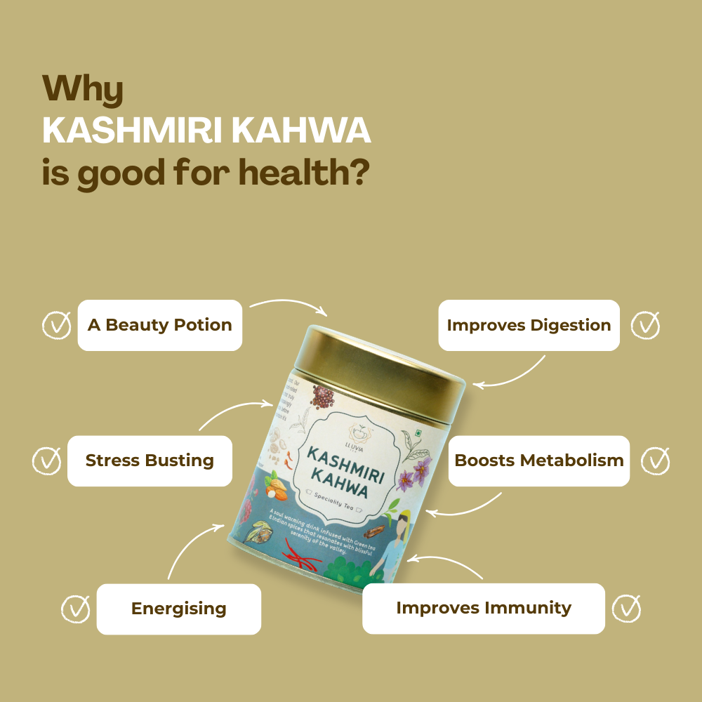 Kashmiri Kahwa is often associated with potential health benefits due to its antioxidant-rich ingredients. These benefits may include improved metabolism, reduced oxidative stress, and potential cardiovascular advantages. However, individual responses can vary, and it's advisable to consult with a healthcare professional for personalized advice.