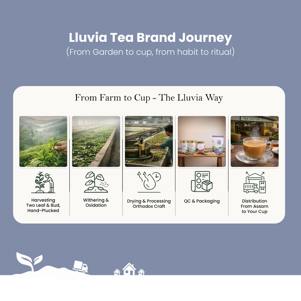 The only close-to-source facility in India. Lluvia Tea's unique procurement process have our teas arrive within just 3 hours after direct sourcing from our garden. On arrival, they are sealed and packed within 48 hours, ready to be shipped to your doorstep the world's freshest Indian Tea.