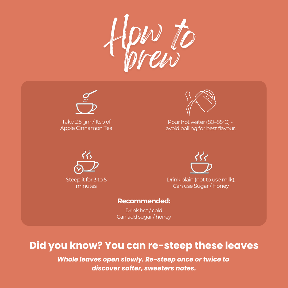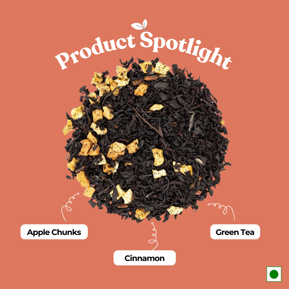Indulge in the comforting blend of Apple Cinnamon Tea, celebrated for its delightful aroma and soothing qualities.