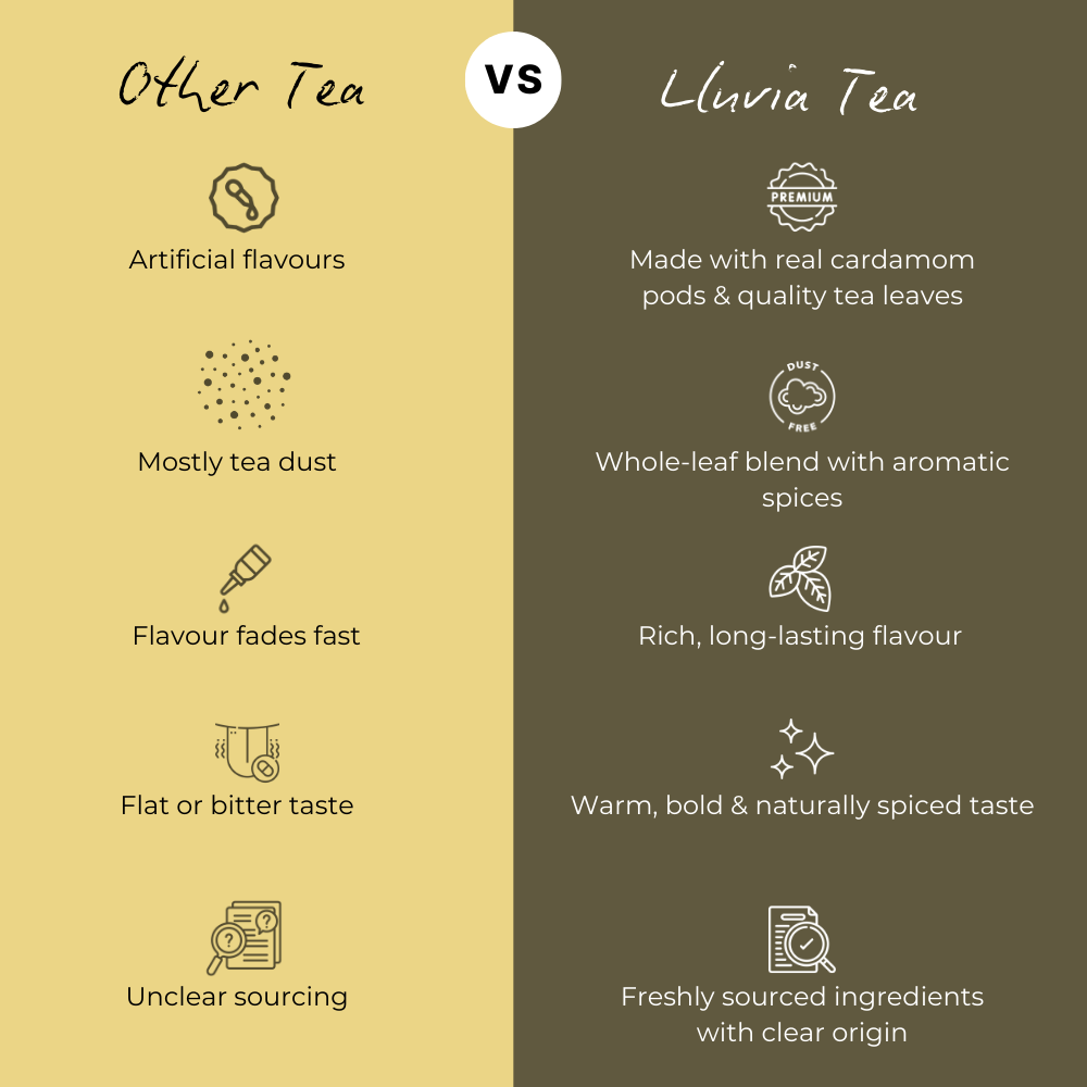 Our Cardamom Tea is crafted by expert tea artisans who carefully select premium tea leaves and blend them with the perfect amount of cardamom to create a harmonious balance of flavours. The tea is then packaged to preserve its freshness and aroma.