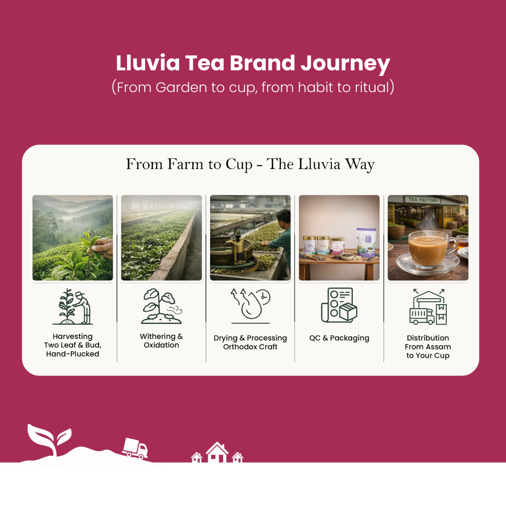 The only close-to-source facility in India. Lluvia Tea's unique procurement process have our teas arrive within just 3 hours after direct sourcing from our garden. On arrival, they are sealed and packed within 48 hours, ready to be shipped to your doorstep the world's freshest Indian Tea.
