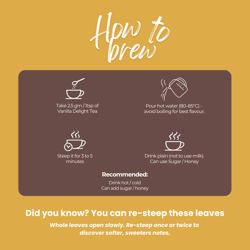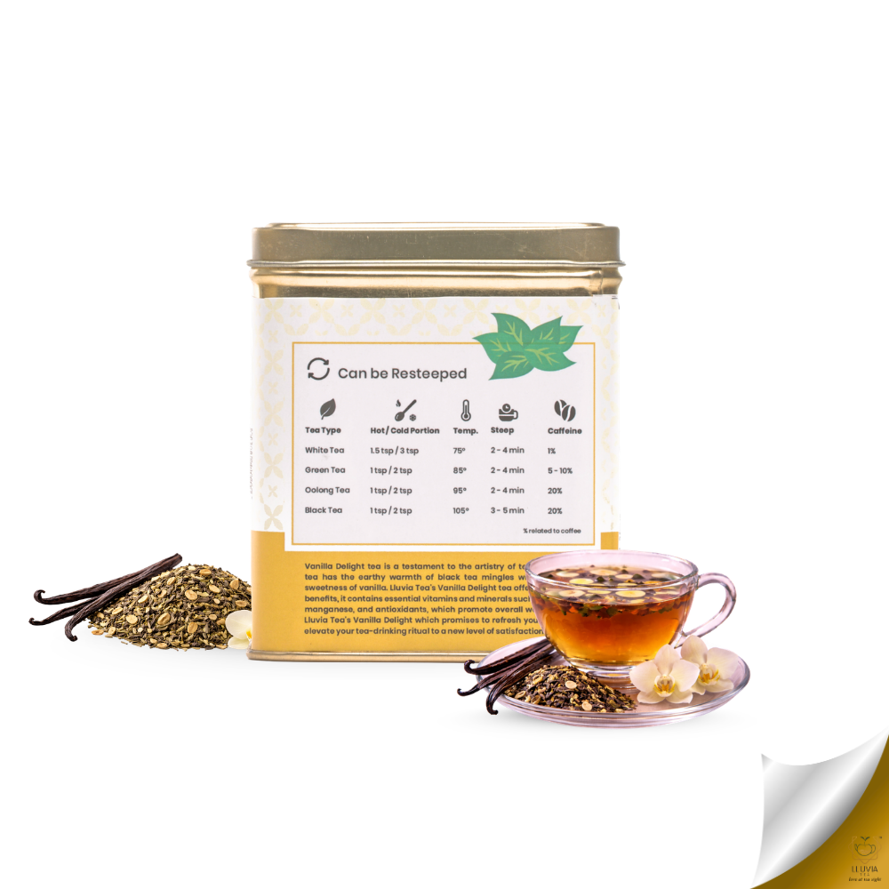 Vanilla Delight Tea has a smooth and creamy flavor which have a calming effect on the mind and body, making it an ideal choice for relaxation and stress relief.